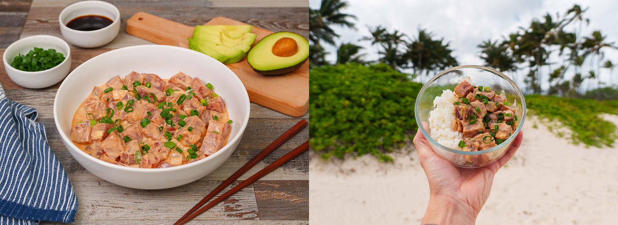 "Whenever I travel, the first thing I NEED when I return home to Hawaii is some poke and the beach! Spicy ahi was the first poke I ever tried, and it's always been my favorite ever since. It's excellent as a poke bowl, but I love scooping it up with some Maui onion-flavored chips!
