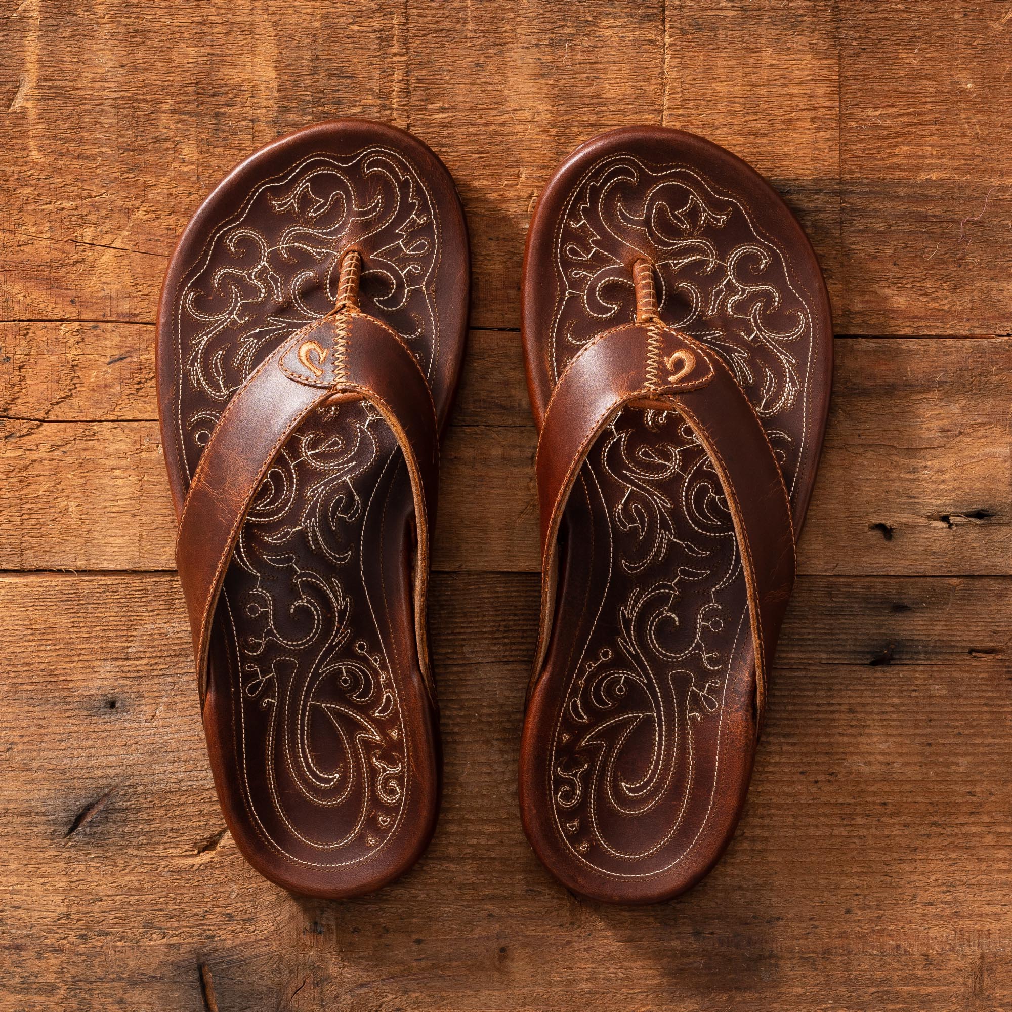 OluKai Craftsmanship: The sandal features exceptional craftsmanship, including embroidery inspired by Hawaiian saddles, an embroidered logo, and a handsewn leather toe post.