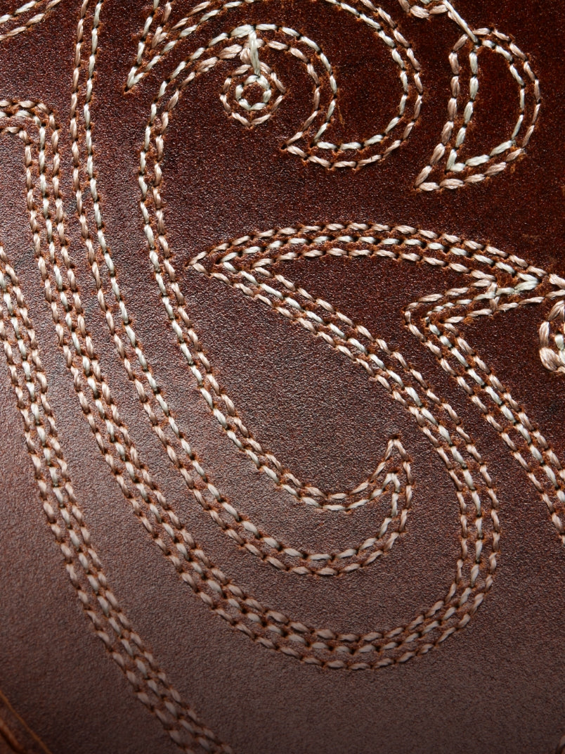 Featuring distressed premium leather and micro-stitching to represent the saddle of a paniolo.