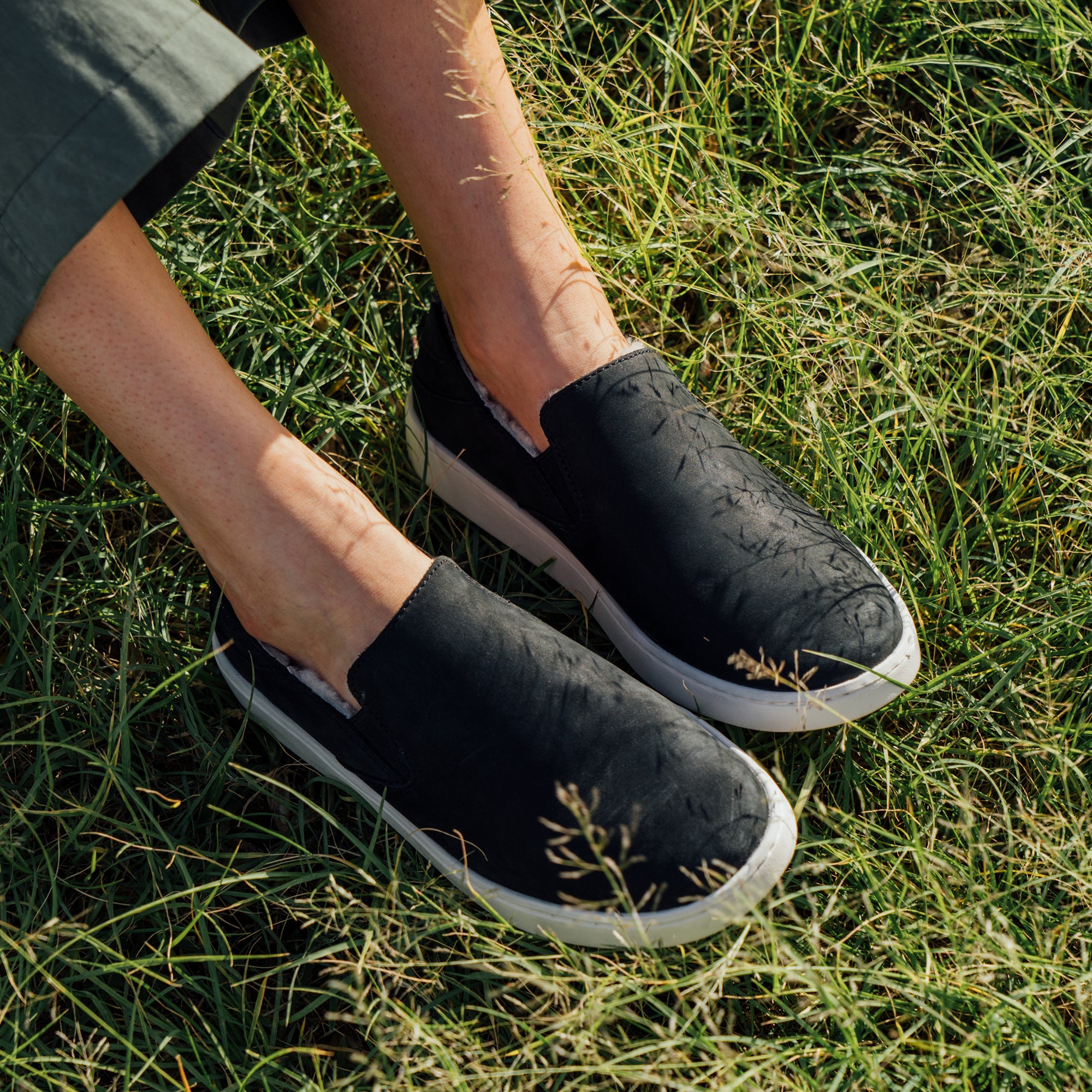 Waterproof nubuck leather meets genuine shearling for a blend of durable function and cozy style. A debossed OluKai logo on the heel adds a touch of signature OluKai craftsmanship.