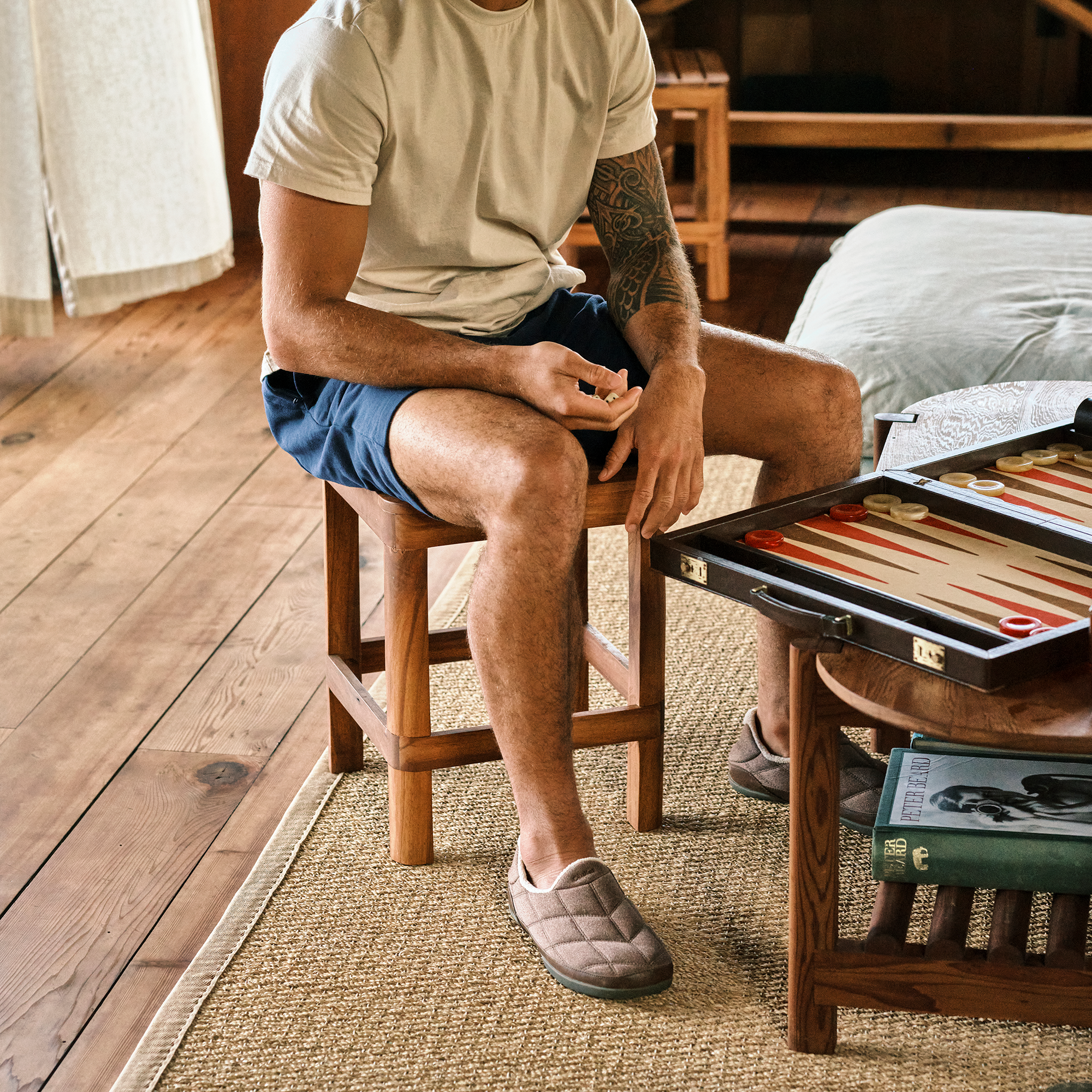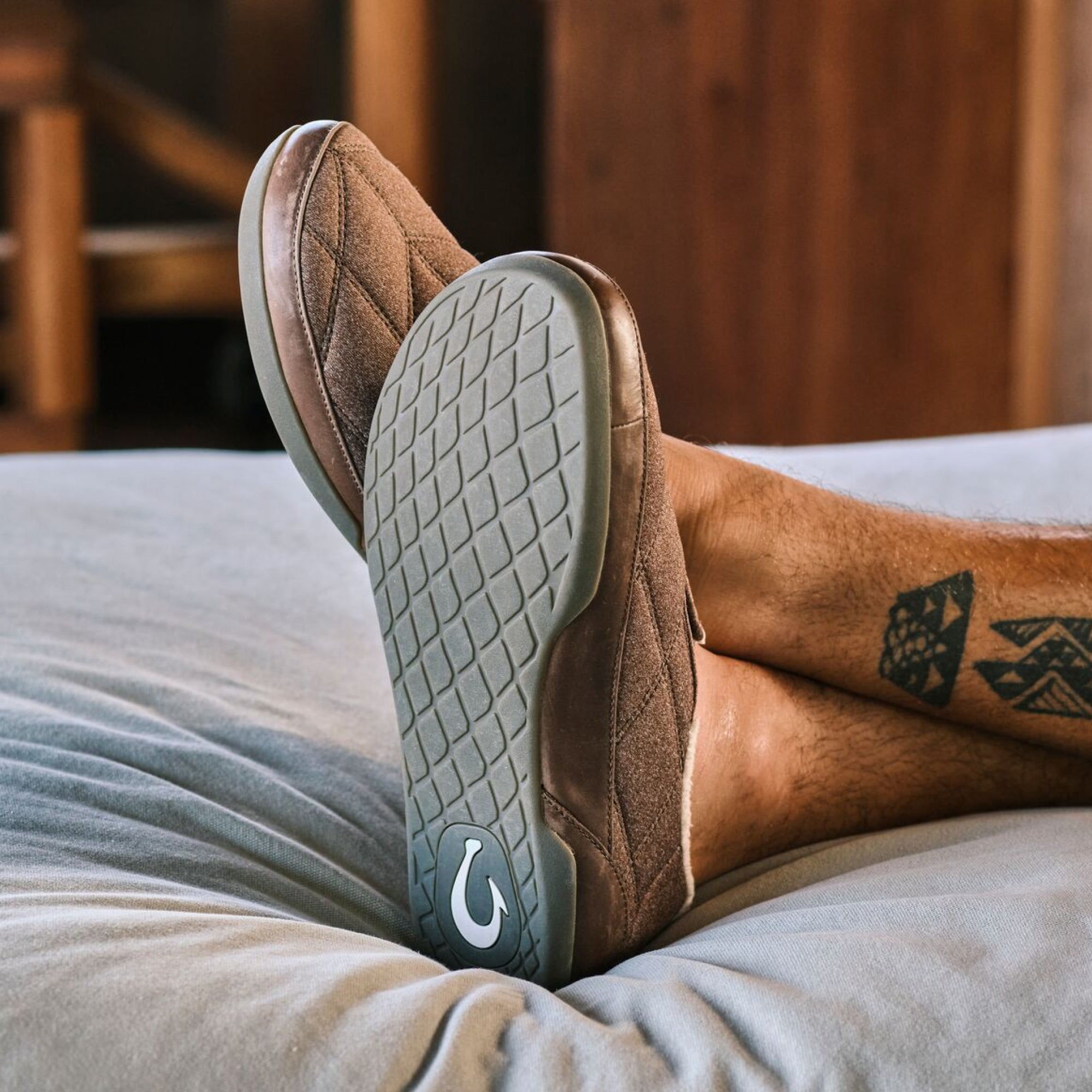 A soft, heather jersey upper pairs with kapa-inspired stitching and full-grain leather detailing, creating a stylish look rooted in comfort and craftsmanship.